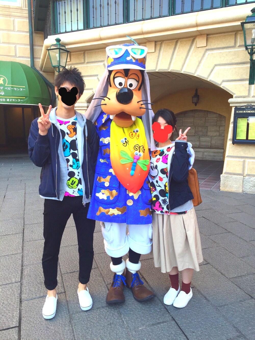 またまたディズニーへ行ってきました(o^^o) 結婚前のラストディズニーかな( ̄▽ ̄) どことなく…いやがっつり?笑 のお揃いコーデ(^^)♬ ポイントは白のスリッポンです‼︎