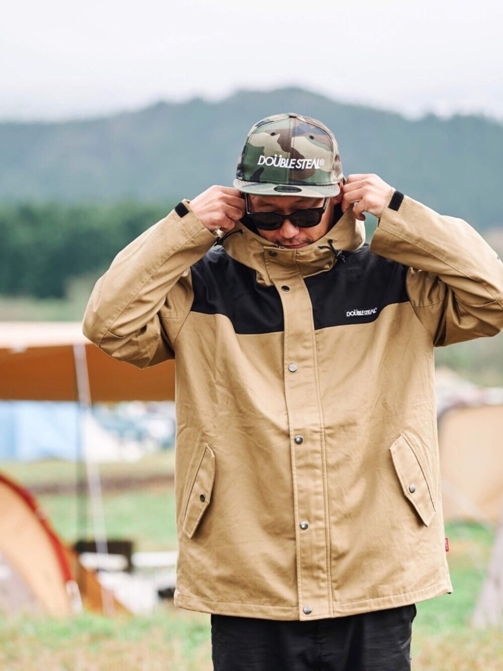 迷彩のキャップ(ニューエラ)x ベージュのマウンテンパーカーです! Instagram double_steal_official