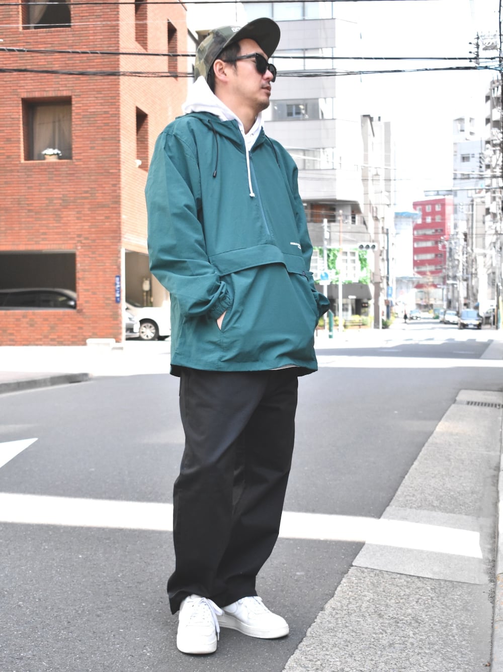 アノラックパーカー ホワイトパーカー ブラックのチノパン 迷彩柄のニューエラCAP です!