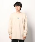ベージュコーディネート シェフパンツ ブラウンのコーチジャケット フロントに刺繍が入ったロンT サングラス 迷彩のキャップ