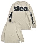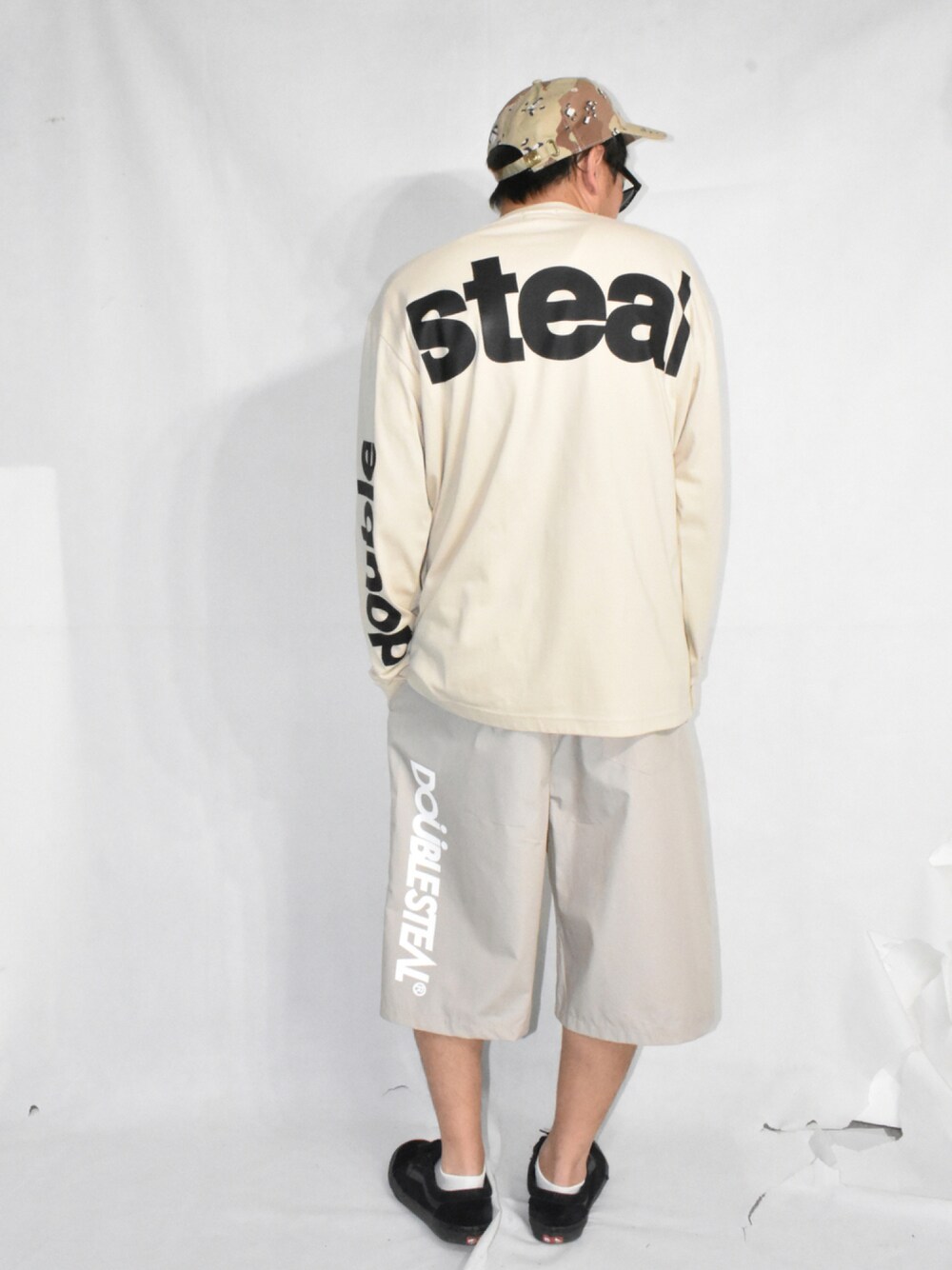 ベージュコーデ ハーフパンツに ロンT 前はシンプルに 後ろに ブランド ロゴ