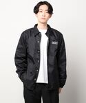 ネイビーの、パンツ アッシュグレーのパーカー 黒のワッペン付きコーチジャケット