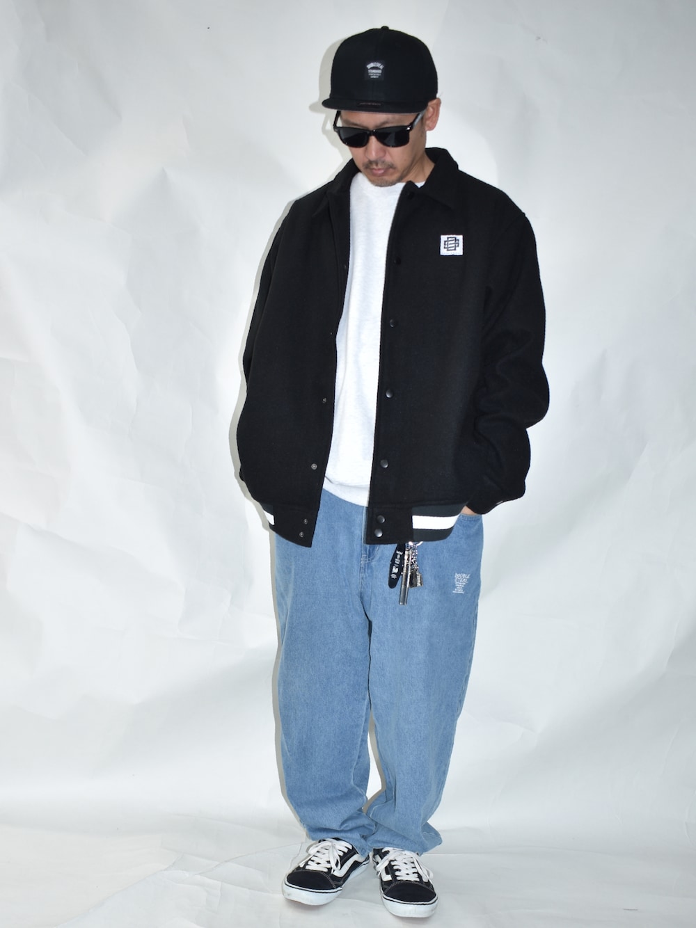 シンプルなデザインのネームを胸元に配したコーチジャケット。 生地はテックウールで、季節感にもマッチ。 シンプルなデザインにネームを配したコーチジャケットです。 ストリートからきれいめまで、幅広いスタイルに対応するコーチジャケットです。 保温性にもフェイクウールウールを採用し、高級感のあるウール風の風合いも実現しました。スタジャンのライン使いを取り入れたデザインで、他のコーチジャケットとは一味違います。