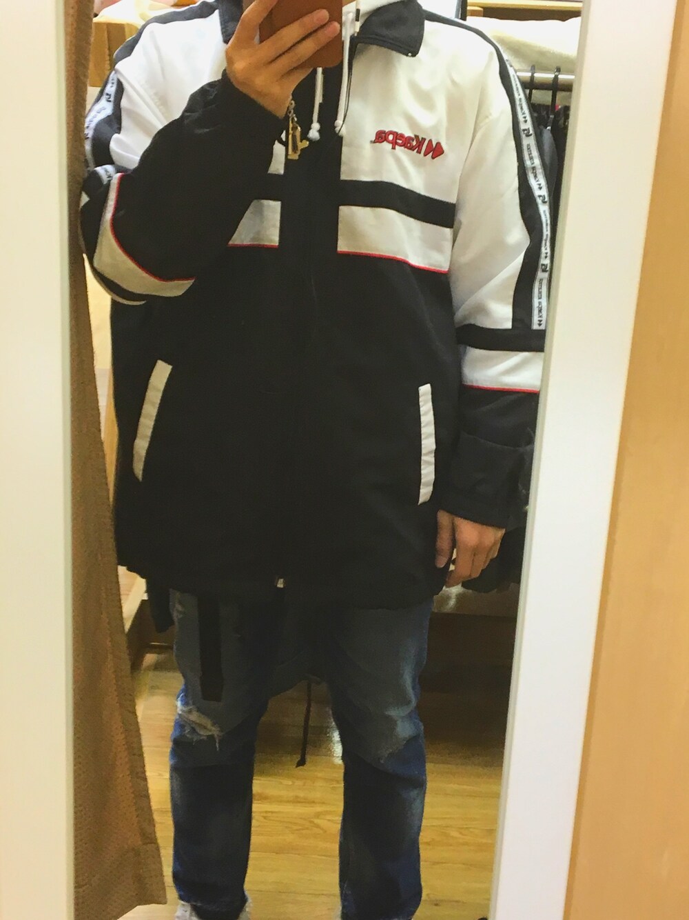 アウターは古着屋で買ったものです 中にchampionのパーカーを着てます パンツはRight-onで買ったものです 靴下は見えないですがchampionのものです 靴はお気に入りのNikeです 最近このアウターを着ることが多いです!