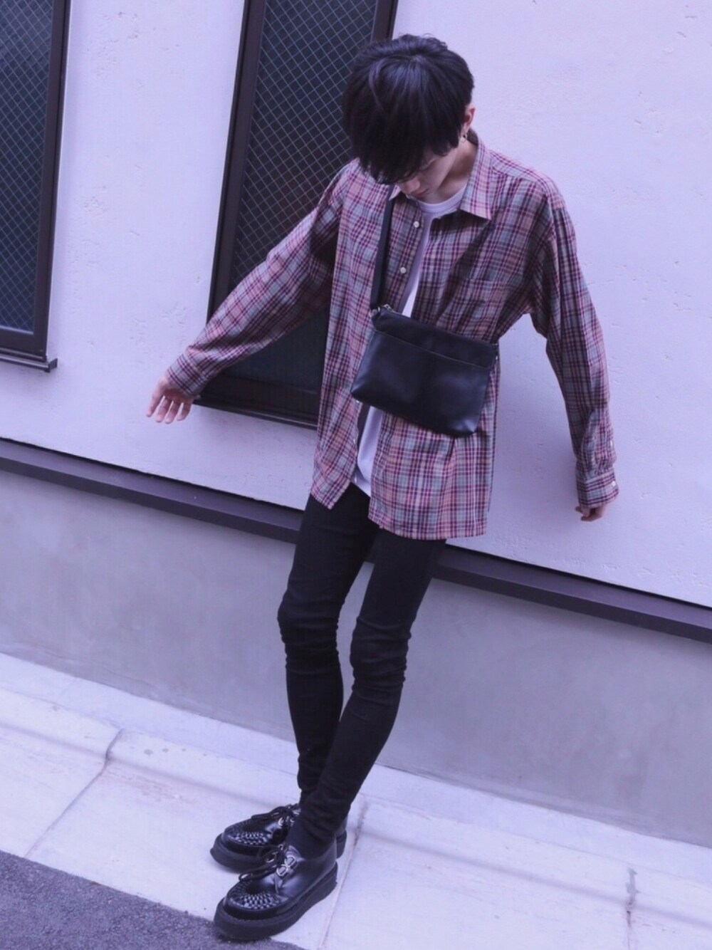 靴を変えて鞄をプラスするだで雰囲気がでますね◎ HAREのサコッシュ、リアルレザーでこの値段は本当にコスパがいいと思いました! 比較的どんな服装にまハマる☺︎ ROCKシューズはGEORGE COX、高いけど、これだけは言える。 マジでかっこいい!!!!!!! トップス M タンクトップ M スキニー 27 ラバーソール UK7.5