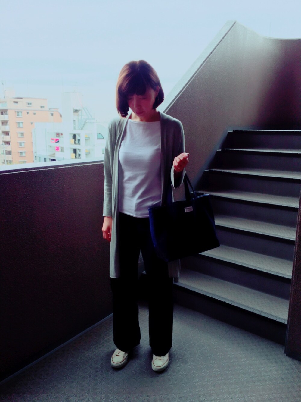 今日もシンプルコーデです。 通勤前です。 グレー、ネイビー、ホワイト、ブラック この4色が多いです。 昼間は暖かくなるようなので、少し薄着にしたら、出てみたら寒い…(>_<) 今日は金曜日♪ あと一息、お仕事頑張りましょう♪