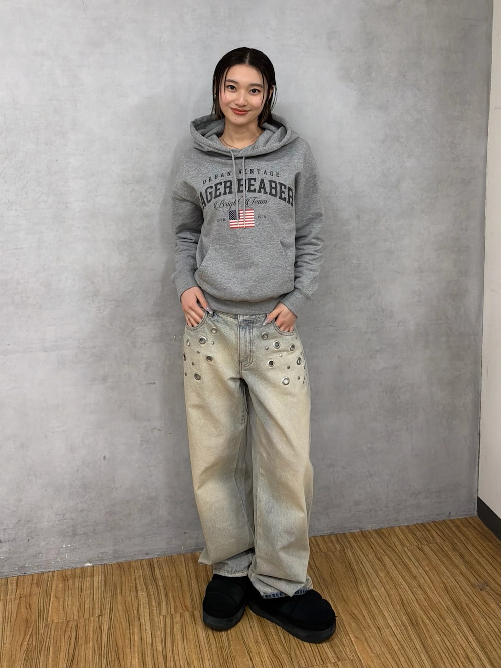うらのことこ(WHO'S WHO gallery ZOZOTOWN/PALCLOSET店)のデニムパンツ「EYELET LOW RISE DENIM /アイレットローライズデニム」を使ったコーディネート
