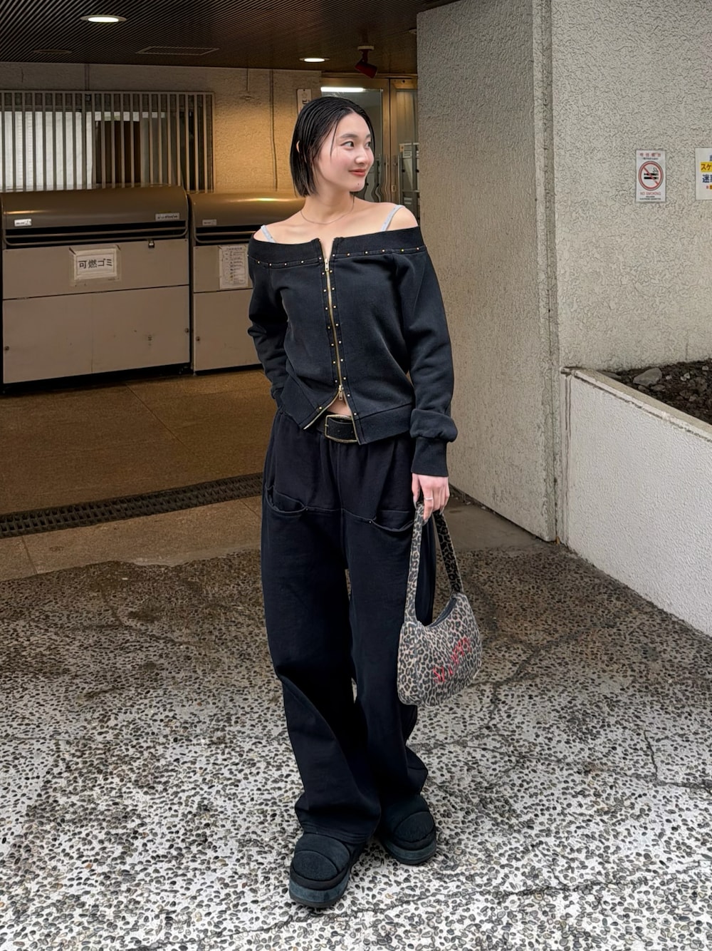 うらのことこ(WHO'S WHO gallery ZOZOTOWN/PALCLOSET店)のTシャツ/カットソー「フロントジップスタッズオフショル」を使ったコーディネート