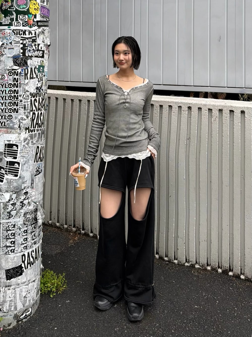 うらのことこ(WHO'S WHO gallery ZOZOTOWN/PALCLOSET店)のTシャツ/カットソー「プロセストレースアップトップス」を使ったコーディネート