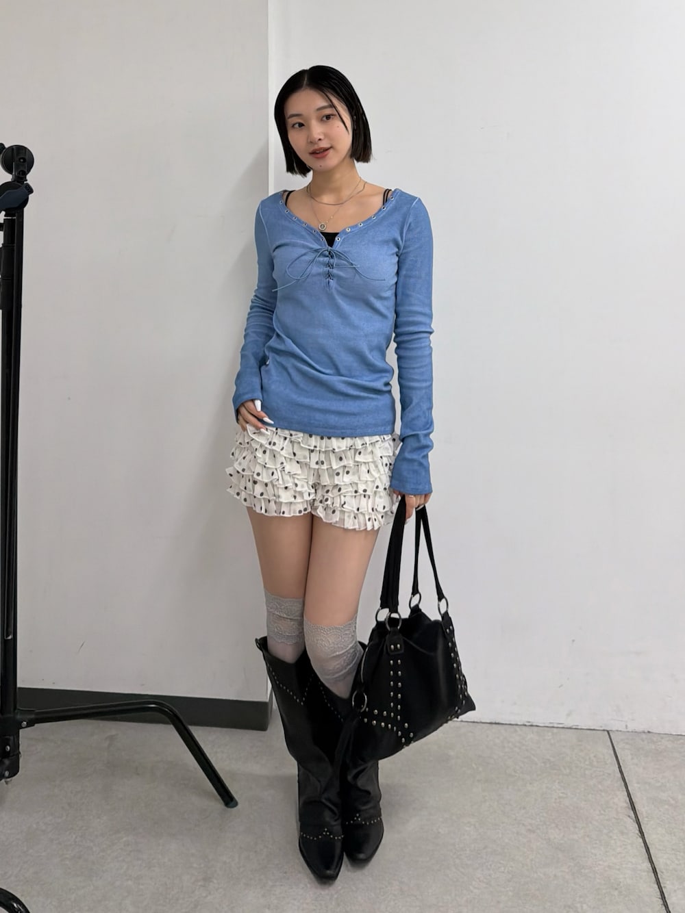うらのことこ(WHO'S WHO gallery ZOZOTOWN/PALCLOSET店)のTシャツ/カットソー「プロセストレースアップトップス」を使ったコーディネート