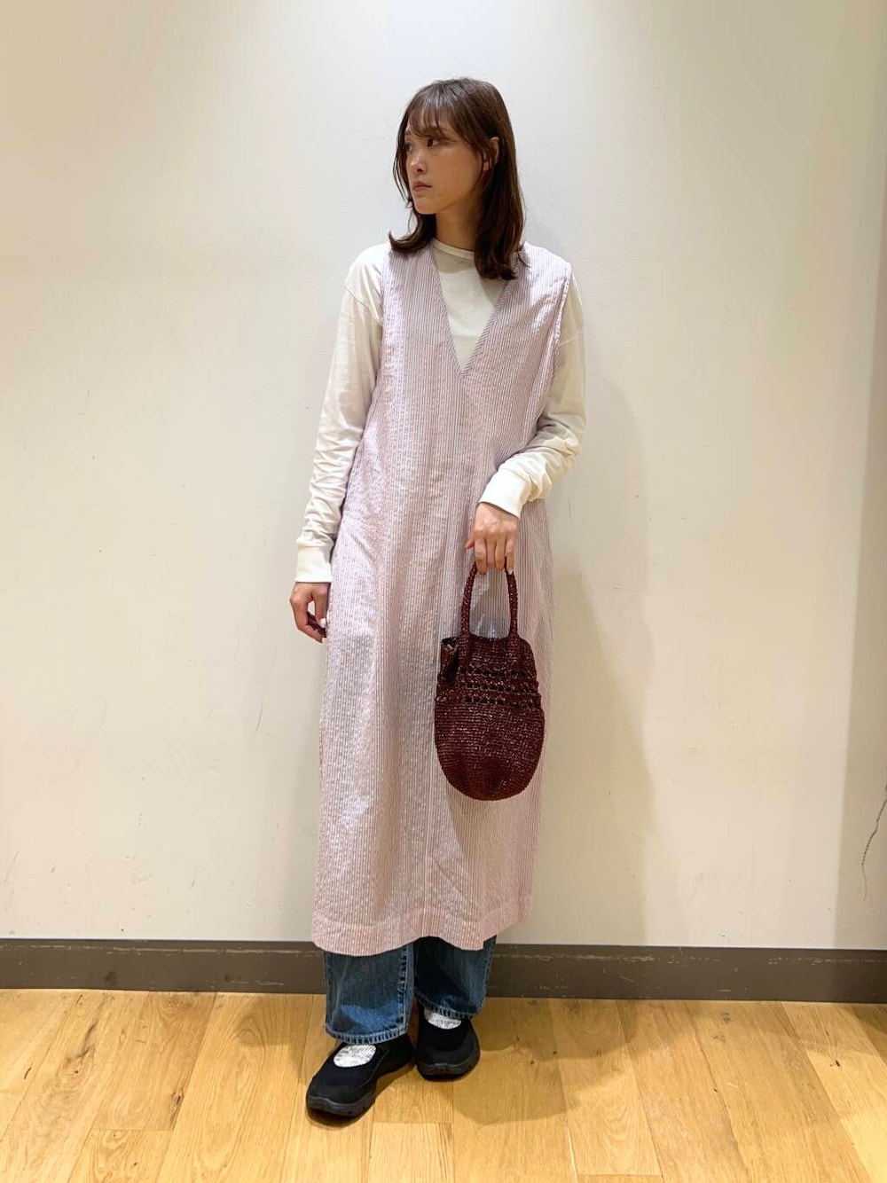 これ買いました!⭐︎ リアルバイ私服コーデ [ワンピース] サイドのみの深めスリットがポイント☝🏻 パンツとのレイヤードがしやすい1枚! ブルー、レッド、ホワイトの細目ストライプ の配色がかわいい〜! [スニーカー] 大人見えするSALOMONのトレンドライクな1足!モノトーンでお持ちのソックスと合わせが しやすくてお気に入り^ ^ コーディネートの参考になれば嬉しいです 是非店頭でお試しください♪ ------------ -------- Type-身長166cm /骨格ナチュラル/イエベ春 Size-Mサイズ/シューズ23.5〜24.0 --------------------