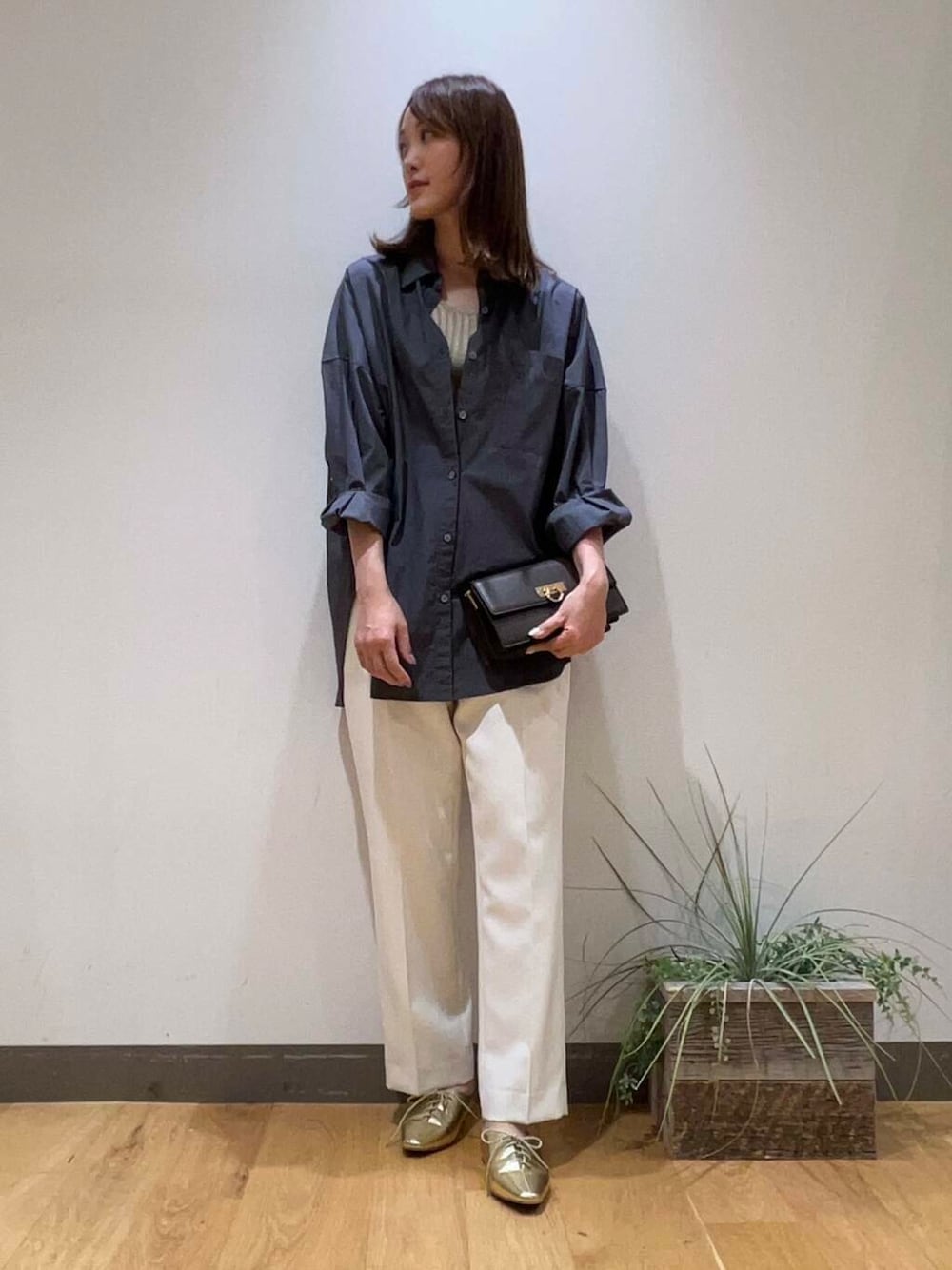 オーバーシャツを主役にキメた女っぽコーデ☝🏻 ☑️シャツ シャリ感のある1枚で決まるアイテム キレイめにもカジュアルにも変身できそう 肩落ち具合がこなれた印象に^ ^ ☑️シューズ インナータンクのキラキラと合わせて ぱっと目を引くゴールド. リボンで女性らしさをプラス 高身長だとパンプス苦手、、、 でも華やかさは欲しい時に大活躍です! ------------ -------- Type-身長166cm /骨格ナチュラル/イエベ春 Size-Mサイズ/シューズ23.5〜24.0 -------------------- コーディネートの参考になれば嬉しいです 是非店頭でお試しください♪
