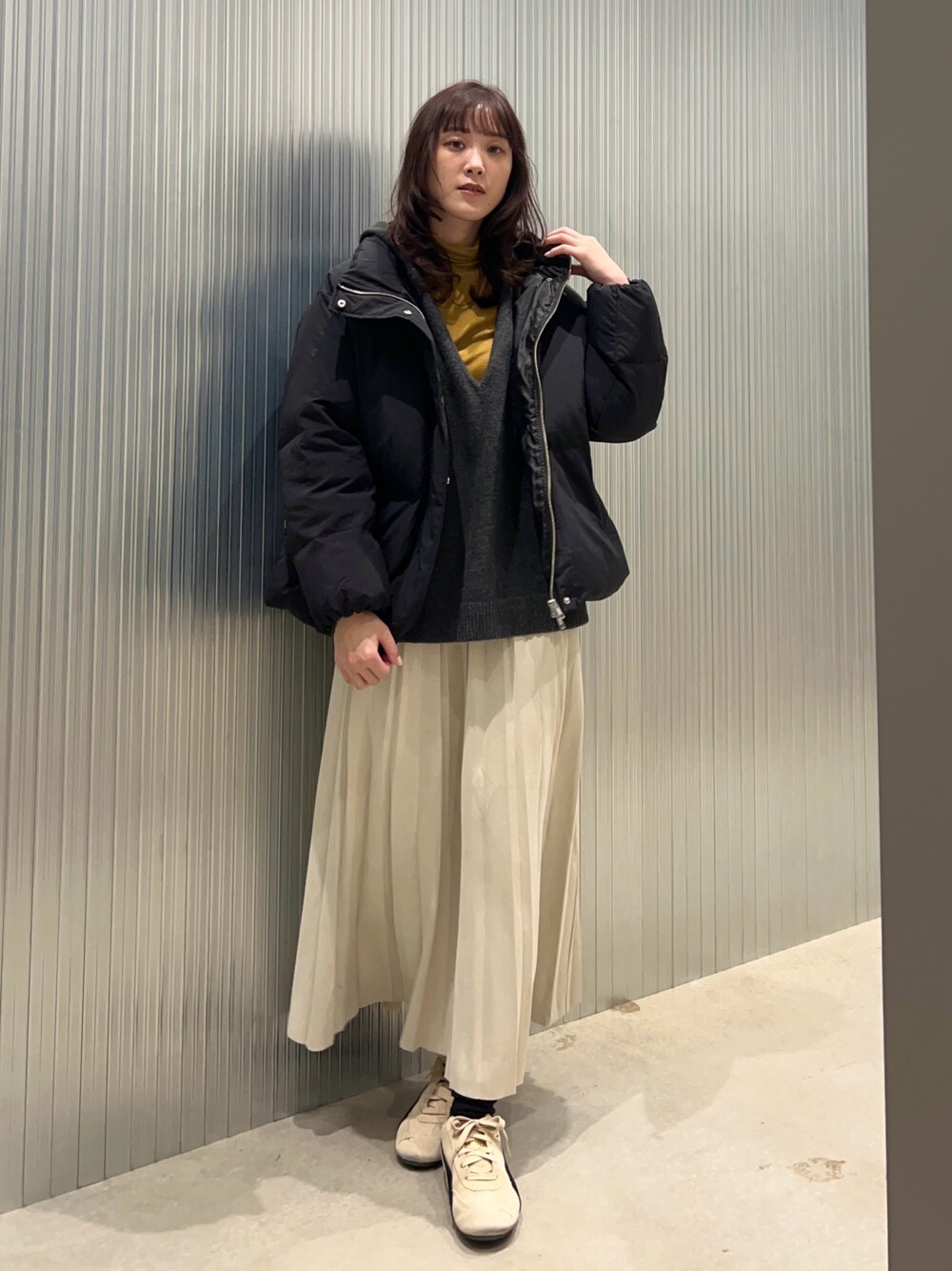 [ダウン] カジュアルすぎない、フード無しスタンドカラーダウン。着用感も軽くて着やすいです!あえてフード付きトップスと合わせて他と差をつけたいスタイリングです✨ [インナー] なめらかな着心地と首元まで暖かい薄手のインナー!カラー物で顔まわりを明るく!💛 コーディネートの参考になれば嬉しいです 是非店頭でお試しください♪ ------------ -------- Type-身長166cm /骨格ナチュラル/イエベ Size-Mサイズ/シューズ23.5〜24.0 --------------------