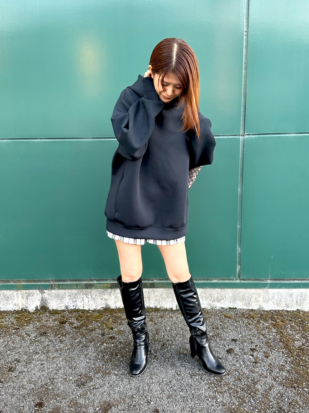 ご覧いただきありがとうございます♪ ショーパンコーデ#2 今日はモノトーンコーディネート♡ ツイードチェックのショーパンにUNIQLOパーカーをオーバーサイズで合わせてみました^_^ ちなみにメンズのパーカーです⭐︎ パーカーは薄手ですごく着心地が良く、この時期にもぴったり♡ いいね・お気に入り・フォロー宜しくお願いします🙇♀️
