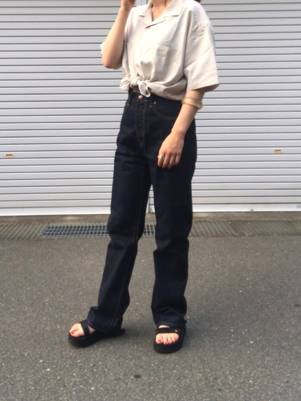 mmのデニムパンツを使ったコーディネート