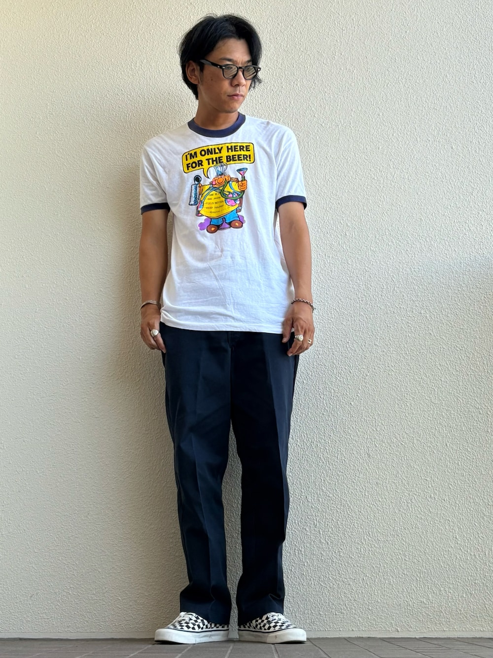 【TOPS】90s USA製リンガーT(サイズL) 【BOTTOMS】90s メキシコ製Dickies874(サイズW34L30) 【SHOSE】VANSオーセンティック44アナハイム(サイズ9h) 【EYEWEAR】MOSCOT レムトッシュ(44size)