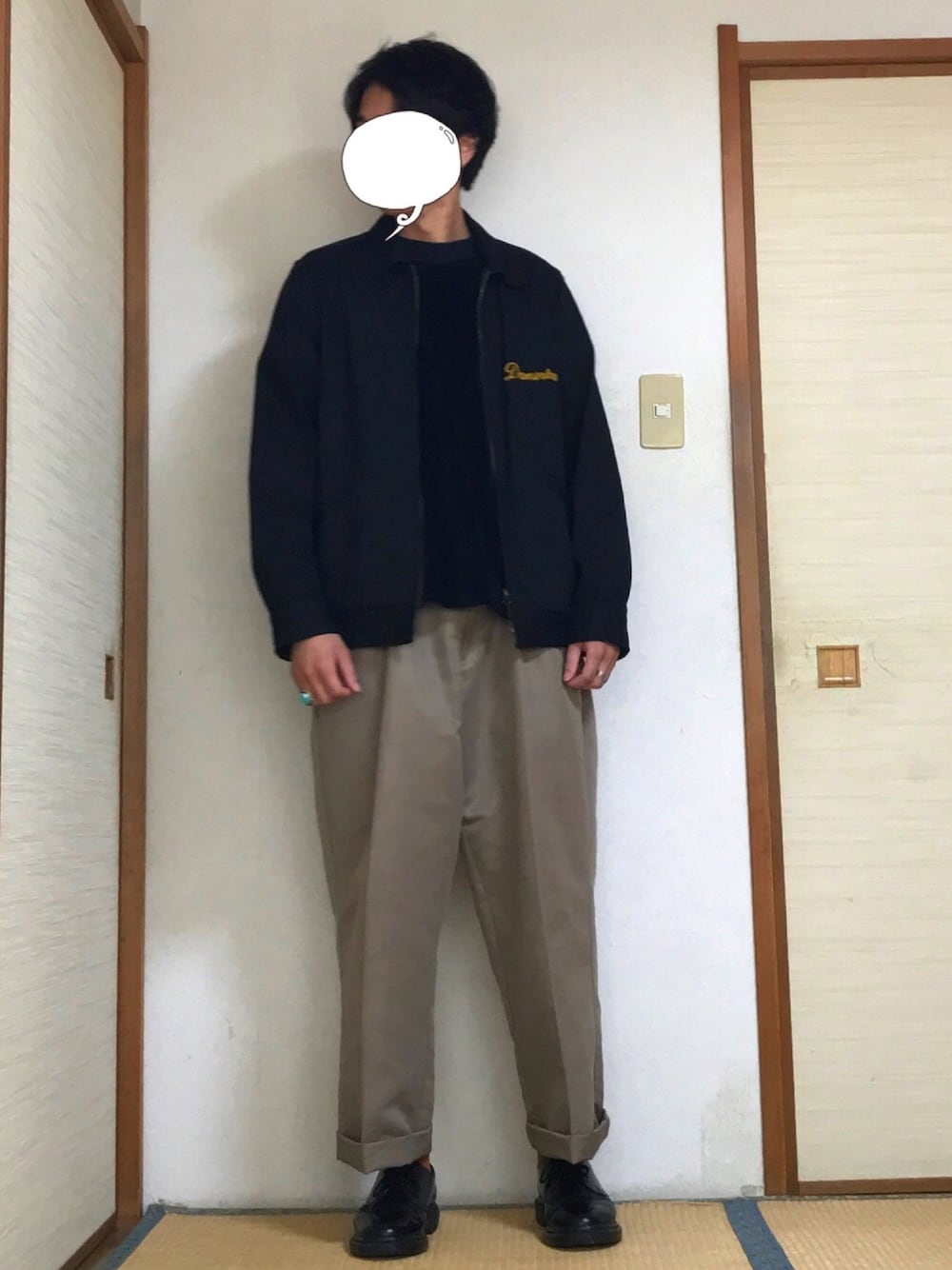 上下ビックシルエットのゆるゆるコーデ👕👖 黒×ベージュは相性グンバツですね!! このパンツは下北で買ったのですが、肌触りがめちゃくちゃよくてヘビロテ確実です😍