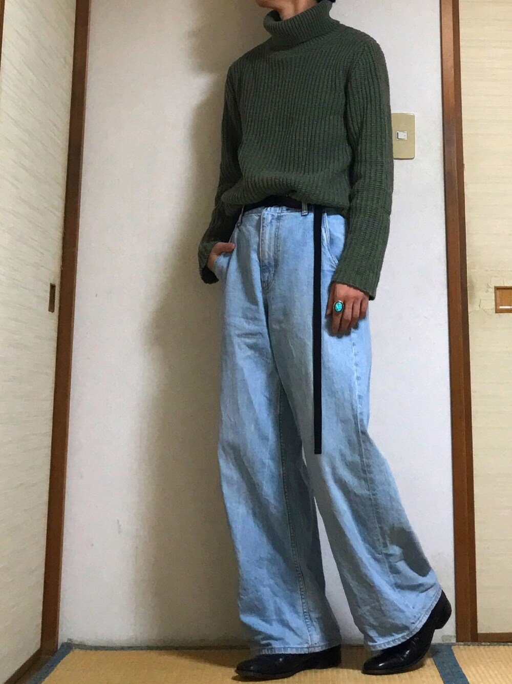 アダストリアブランドでまとめましたー!✨✨ トップスとボトムスどちらもオーバーサイズなのでベルトや革靴でスッキリまとめたつもりです! カーキとターコイズブルーとブラックの3色でまとめました🐊🐬🐜