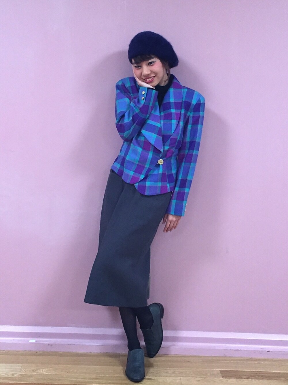 ジャケット:used インナー:UNIQLO タイトスカート:used 靴:andit_ ベレー帽:andit_ 🔵⚫️⚪️ れとろ 🔵⚫️⚪️ ジャケットのシルエットがvivienne みたいでお気に入り ⚫︎⚫︎