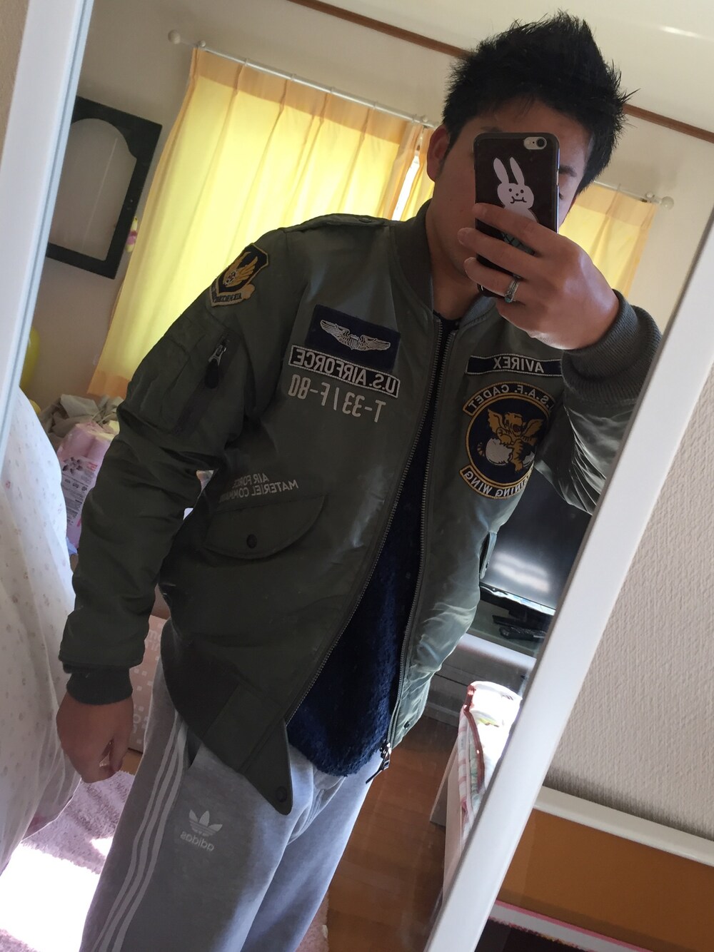 めっちゃ久々の投稿✏️ この前買ったadidasの3本ラインのパンツお気に入り😛 AVIREXのアウターもお気に入り😇