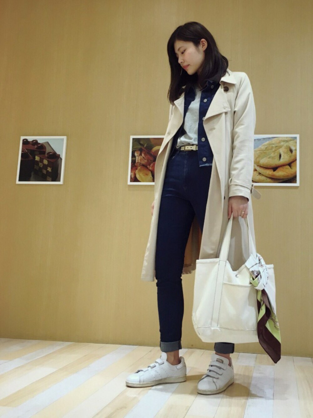 トレンチコート×デニムジャケットのコーデ🌹 上下の色を合わせてセットアップっぽくしてみたヨ。