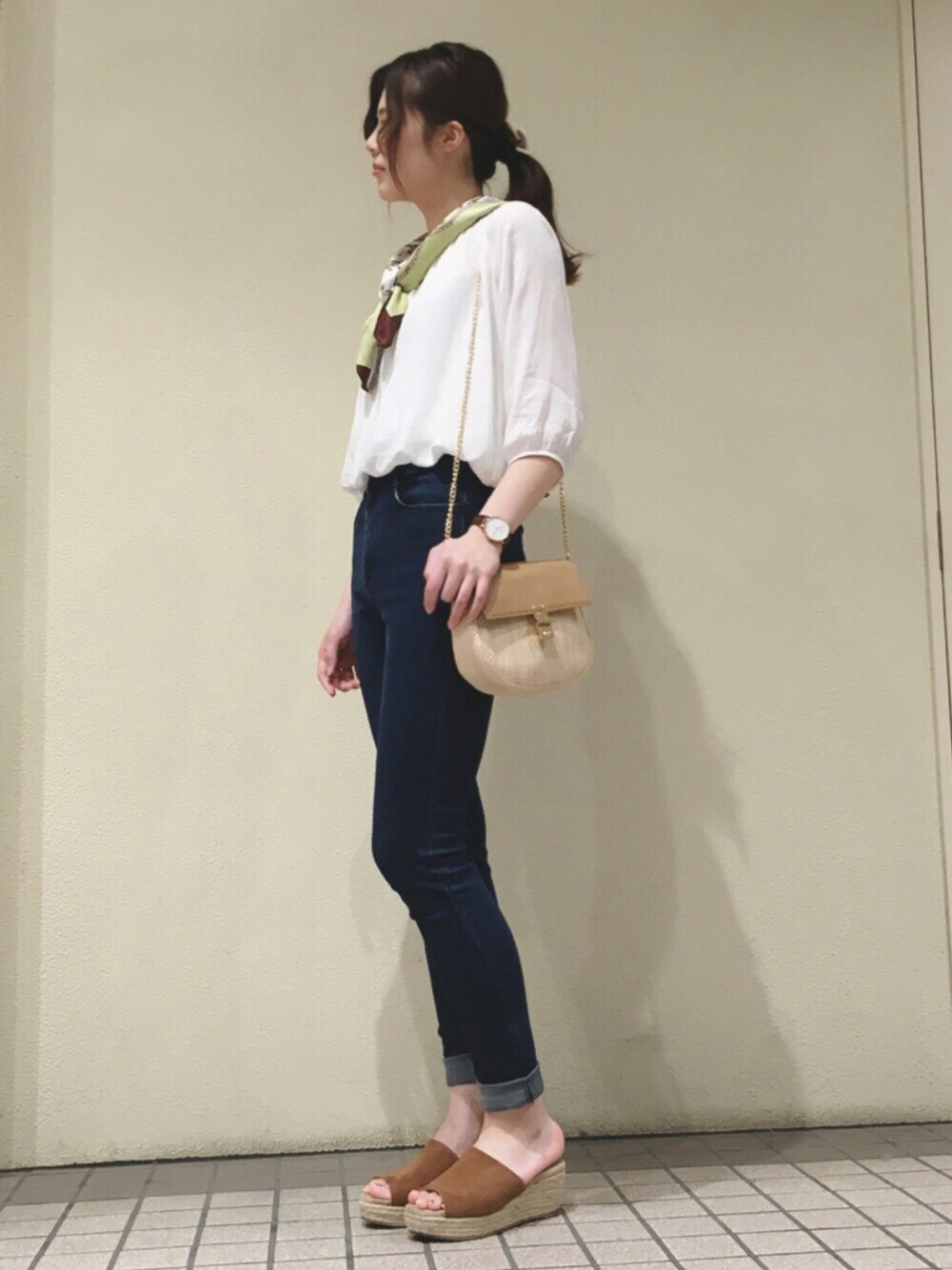 最近はお出かけ日和な天気が続いてますね😊 今回はちょっと綺麗めなコーデ💍 トップスはどこのか忘れちゃいました笑 サンダルはお気に入りです◎ あまりヒールのあるものは履かないけど、 ウエッジソールだから歩きやすくて好きです♩