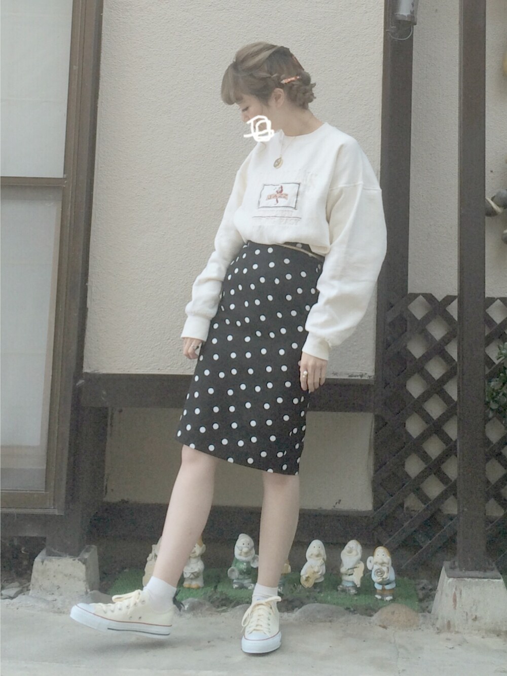 セールで買えたスカートと 新しい腕時計の日 🐏🍃🐏🍃 腕時計が可愛すぎます、、⌚︎ シアターのヘアアクセが とーーってもだいすき 🌜🌿 可愛いヘアアクセのために アレンジも上手くなりたい 💕 スウェットは サンキューマートです ⭐️