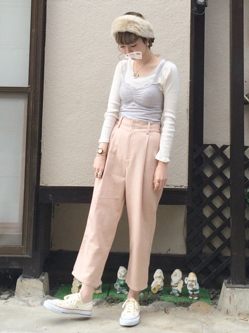 古着を着てない奇跡の日 🌛 古着はずっと好きだけど 最近少し大人に なれてる気がします ☺️☺️笑 淡い色がすきですな〜🐰🐰 このmysticのパンツも snidelのトップスも 気に入って2色買いした物☺️🌿