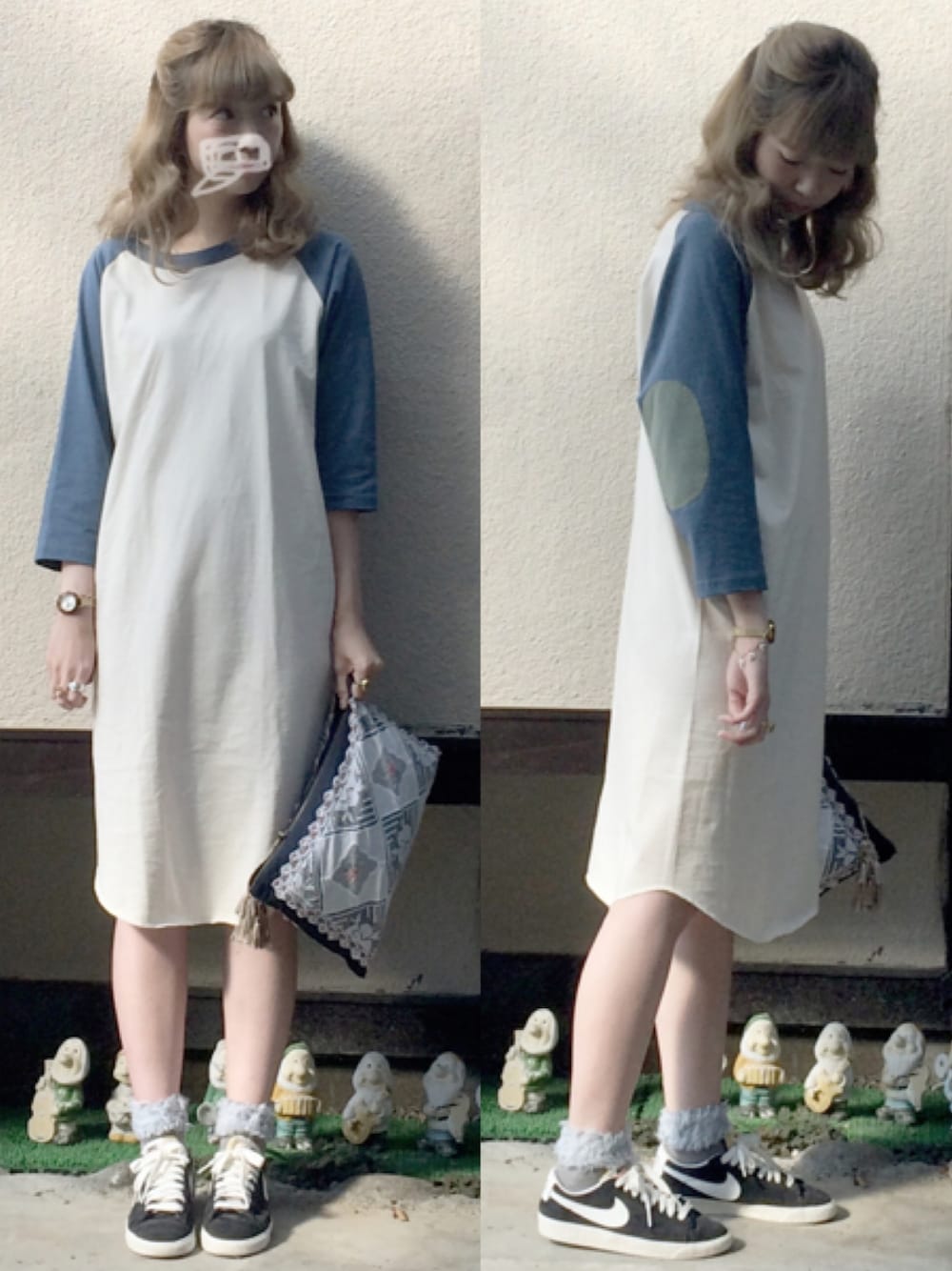 ラグランのワンピース 🌿 エルボーパッチがつぼ 🎈🎈 色味も古着みたいで すごく かわいい〜〜 🌛🌛 そして新たに ファーの靴下を買いました❤️ 本当ファーがすきだ 🐷🐷