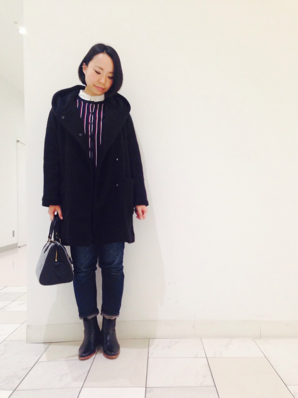 大きめのフードが可愛いコートです。