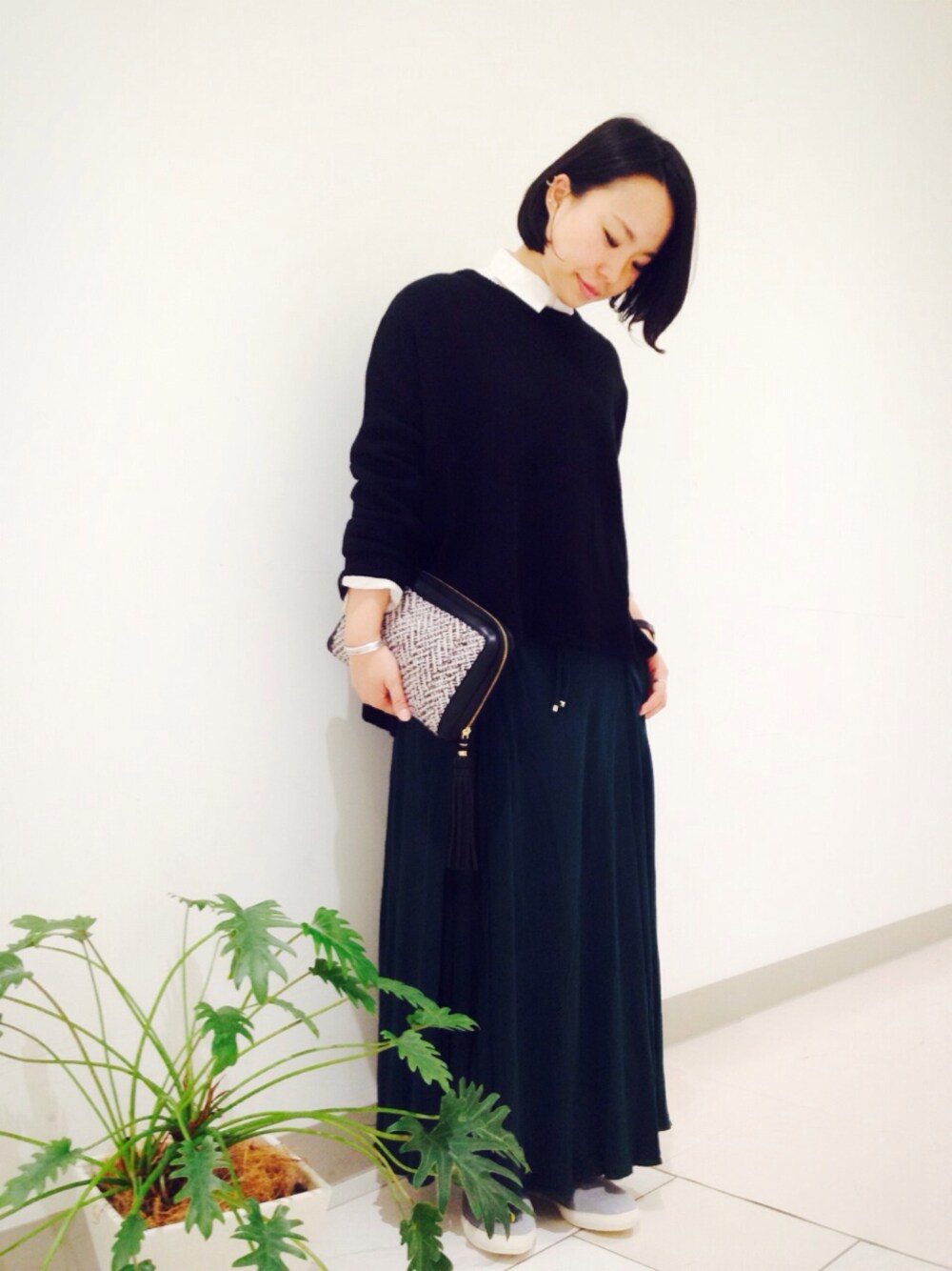 ゆるニットにロングスカートでゆるゆるリラックススタイルもダークカラーを選ぶとまた雰囲気UP☆