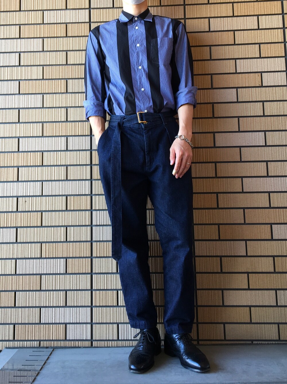 こんにちは。ご覧頂きましてありがとうございます! 本日は昼過ぎの外出で暑かったのでシャツ一枚とデニムです。 soeのストライプシャツなんですが、太いストライプと細いストライプの組み合わせでうるさくて好きなんです(笑) cullniのデニムと相性良くて、お気に入りの組み合わせの一つです。