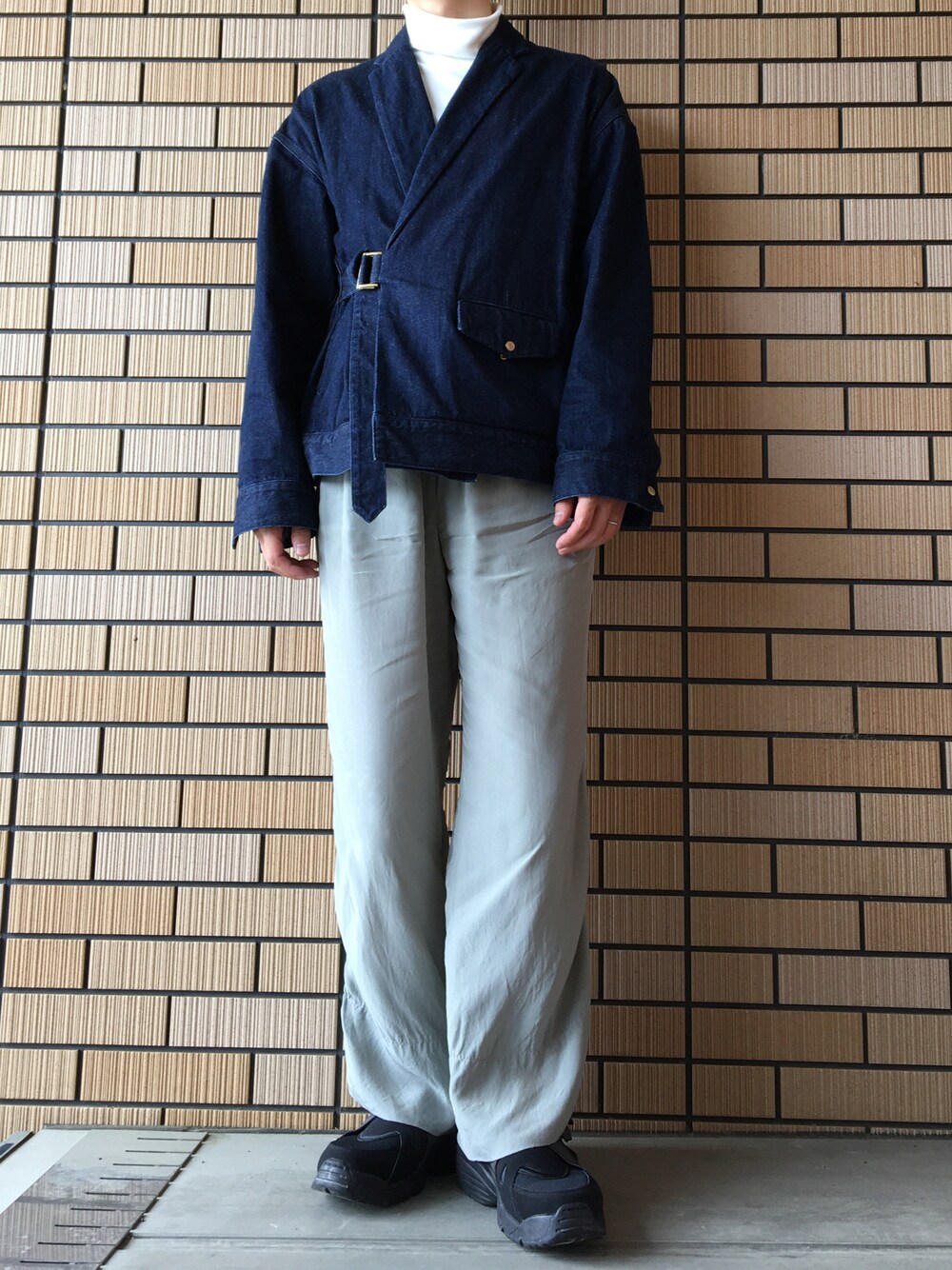 こんにちは。 ご覧頂きましてありがとうございます。 今日は、デニムジャケットをメインにコーデしました。 レーヨンイージーパンツと初めて組み合わせましたが綺麗なシルエットになりました。アイスブルーのワイドデニムと合わせてもいいかなと思いました。