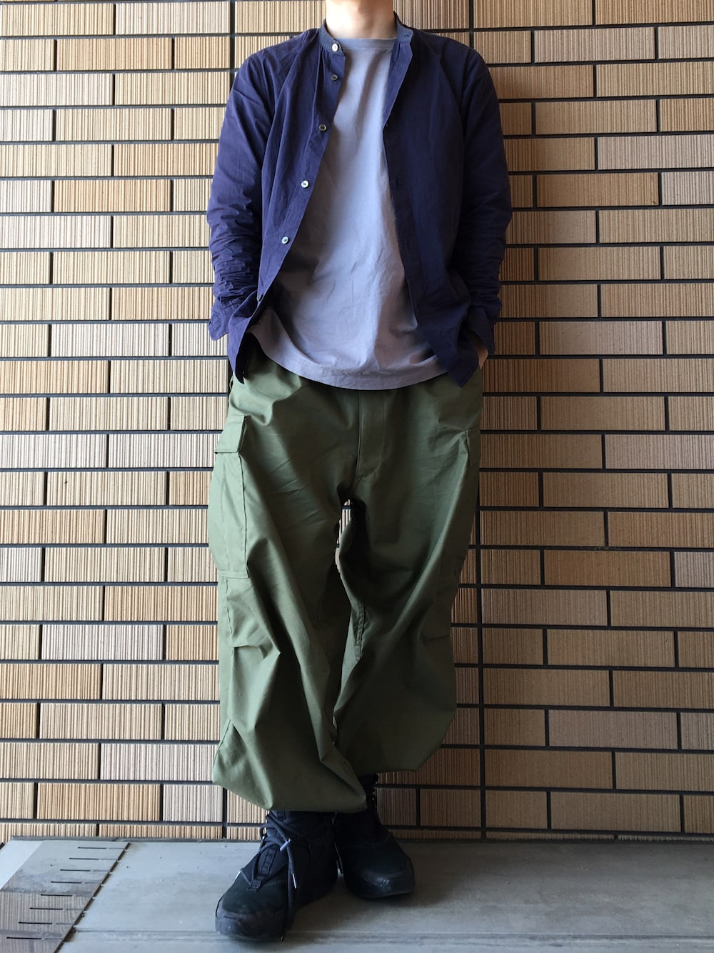 こんにちは。 ご覧頂きましてありがとうございます。 今日は、カーゴパンツをメインにコーデしました。 足元はブーツっぽいハイカットのNIKEスニーカーを合わせて、上のA.P.Cのスタンドカラーシャツは閉じずに羽織として着ました。 閉じたら無骨さが無くなりすぎてアンバランスかと思ったので。 何かあればアドバイスやコメント宜しくお願い致します。