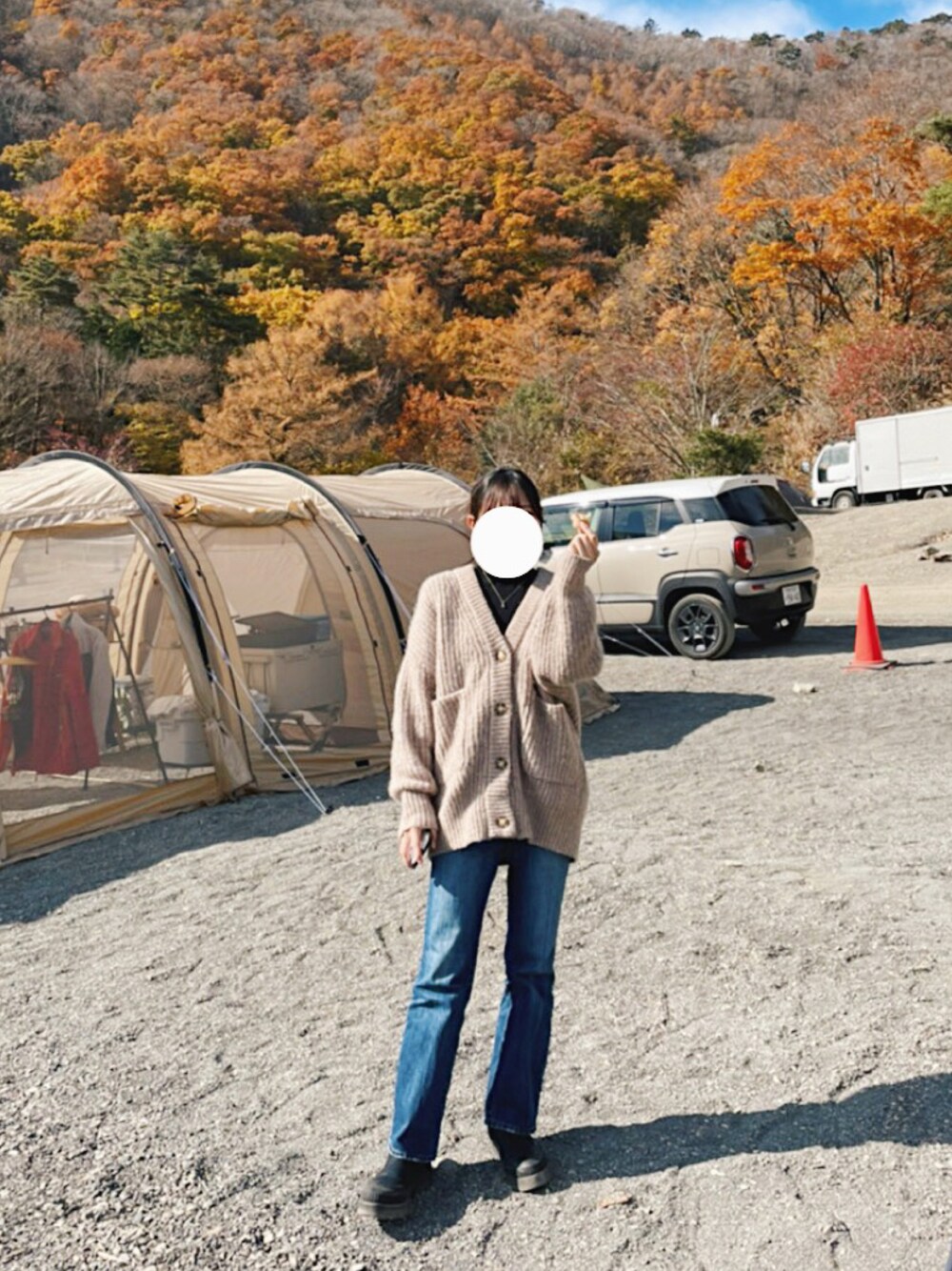カーディガン×デニムフレアパンツ 富士五湖の紅葉がとっても綺麗🍁