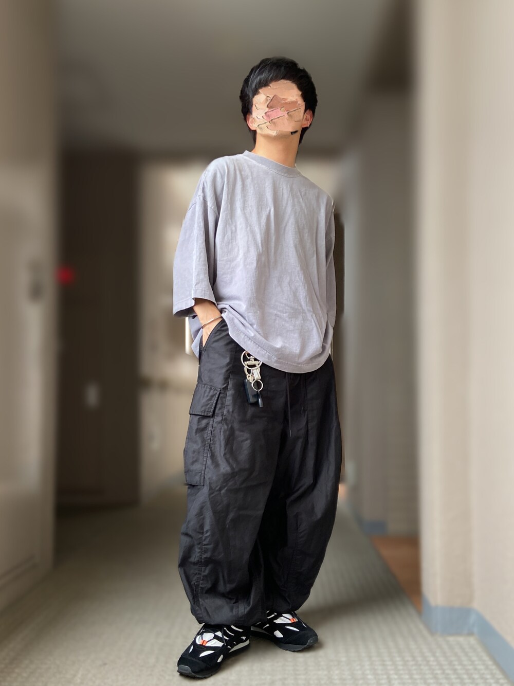 おます@低身長(159cm)のTシャツ/カットソー「WEB限定 CHOW DOWN/チャウダウン ビッグサイズ ワンポイントロゴTシャツ/オーバーサイズカットソー/くすみカラー」を使ったコーディネート
