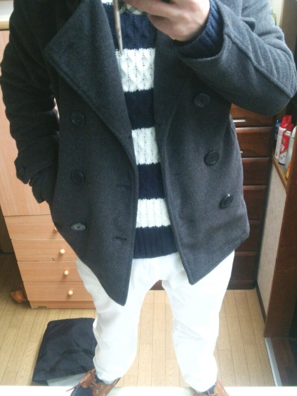 ホワイト系のその他パンツを着用したメンズの冬コーディネートの1枚目の写真