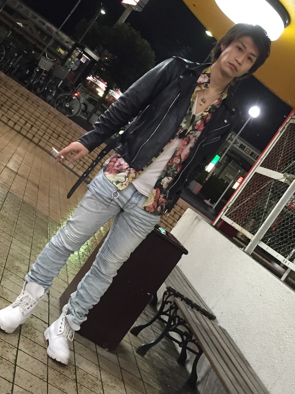 流行りのバイカーデニムを買いました! ストリートっぽく仕上げたいんですが 髪型も含め、カジュアルっぽく着ないと似合わないと思ったので ある程度カジュアルさを残しました 似合わないかな?