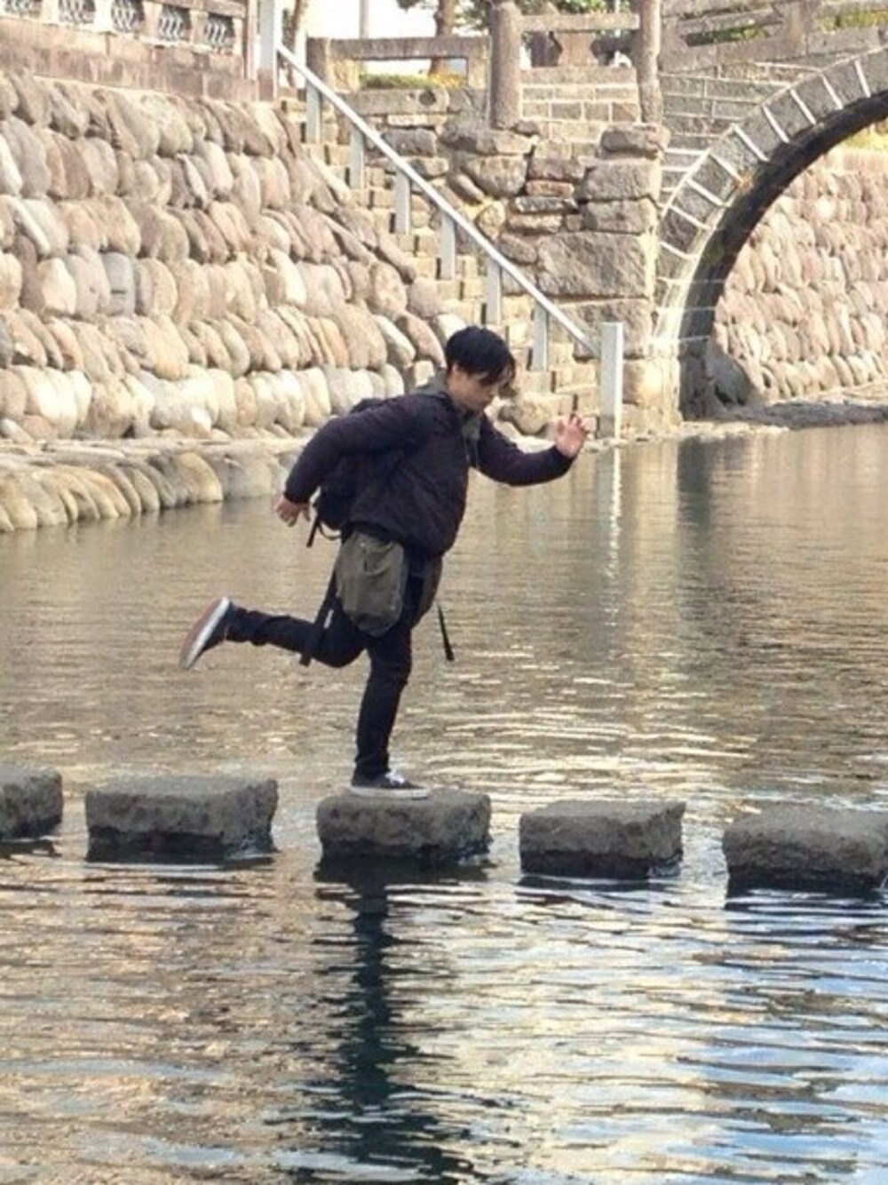 ブラック系のブルゾンを着用したメンズの春コーディネートの1枚目の写真