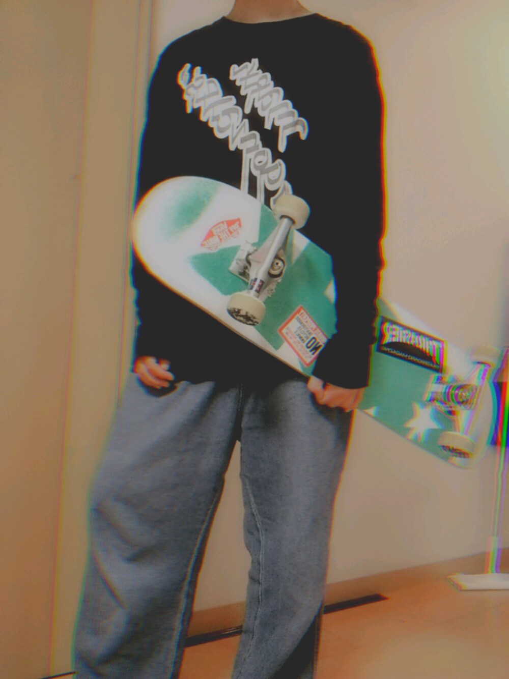 最近、洋服買いすぎる。。 古着屋さんでまたまた買い物😍✨✨ スケボーのブランド😁😎 洋服同じ感じでごめんなさい😭😵 デッキにシール貼りまくり😎😎✨ オーリー。。あとは擦り足だぁー。。 スケーターの人!擦り足教えてください😵😵