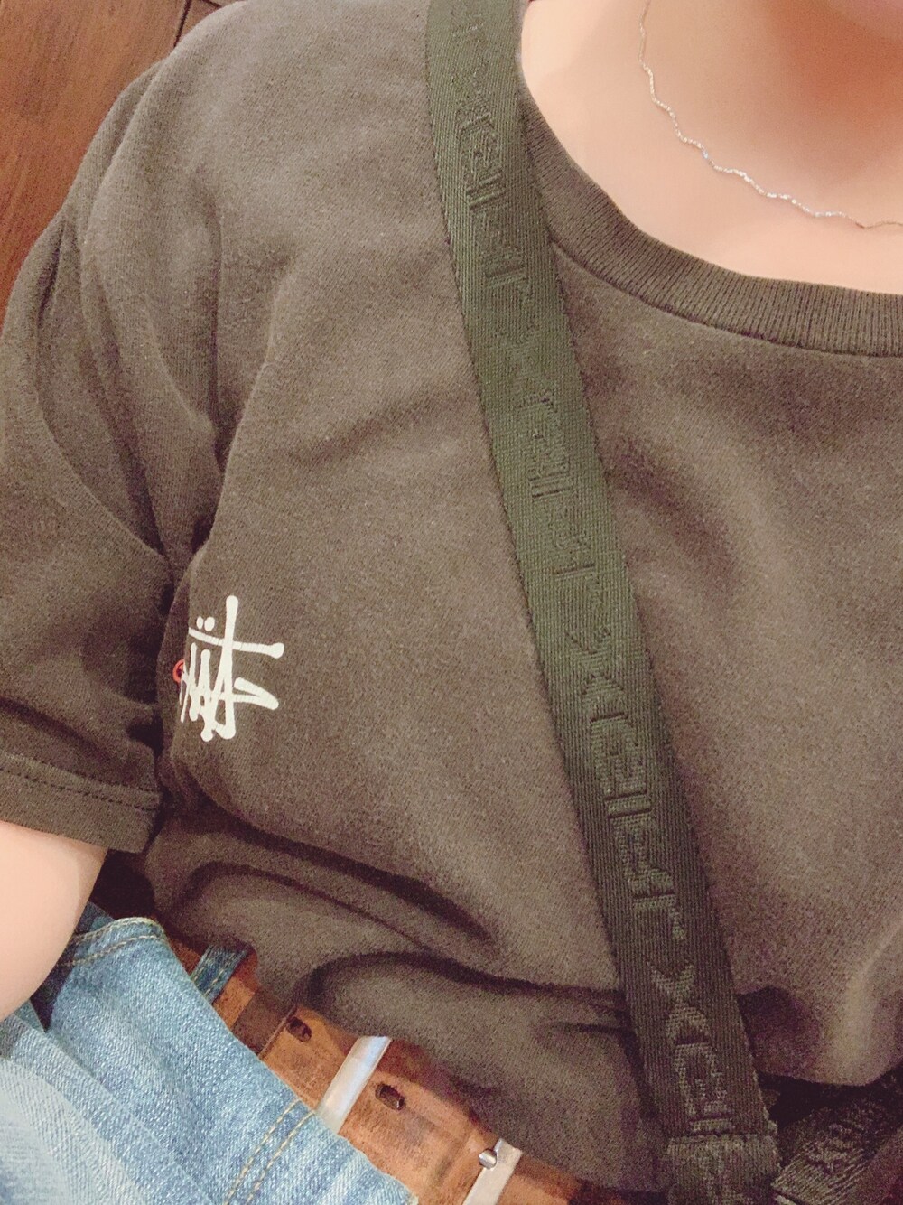 今日暑すぎて半袖🤣 ステューシーうしろビックロゴでお気に入りです🥰❤️❤️そして、かわいいネックレス買いました🥺✨