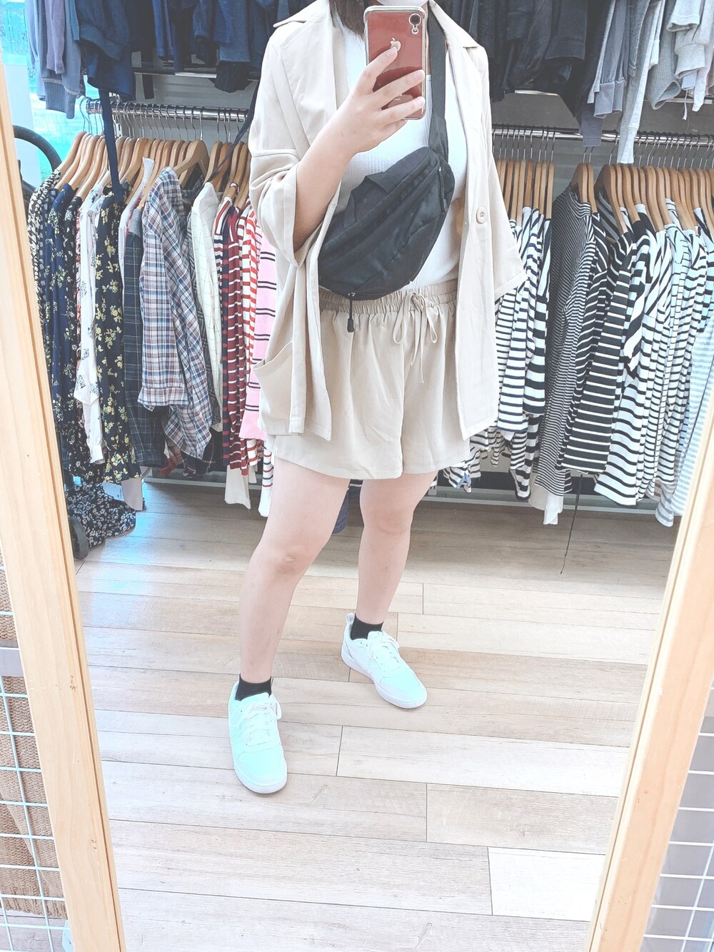 古着屋さんでぱしゃり📸 念願のセットアップかわいすぎます🥰 NIKEの靴お気に入り😋