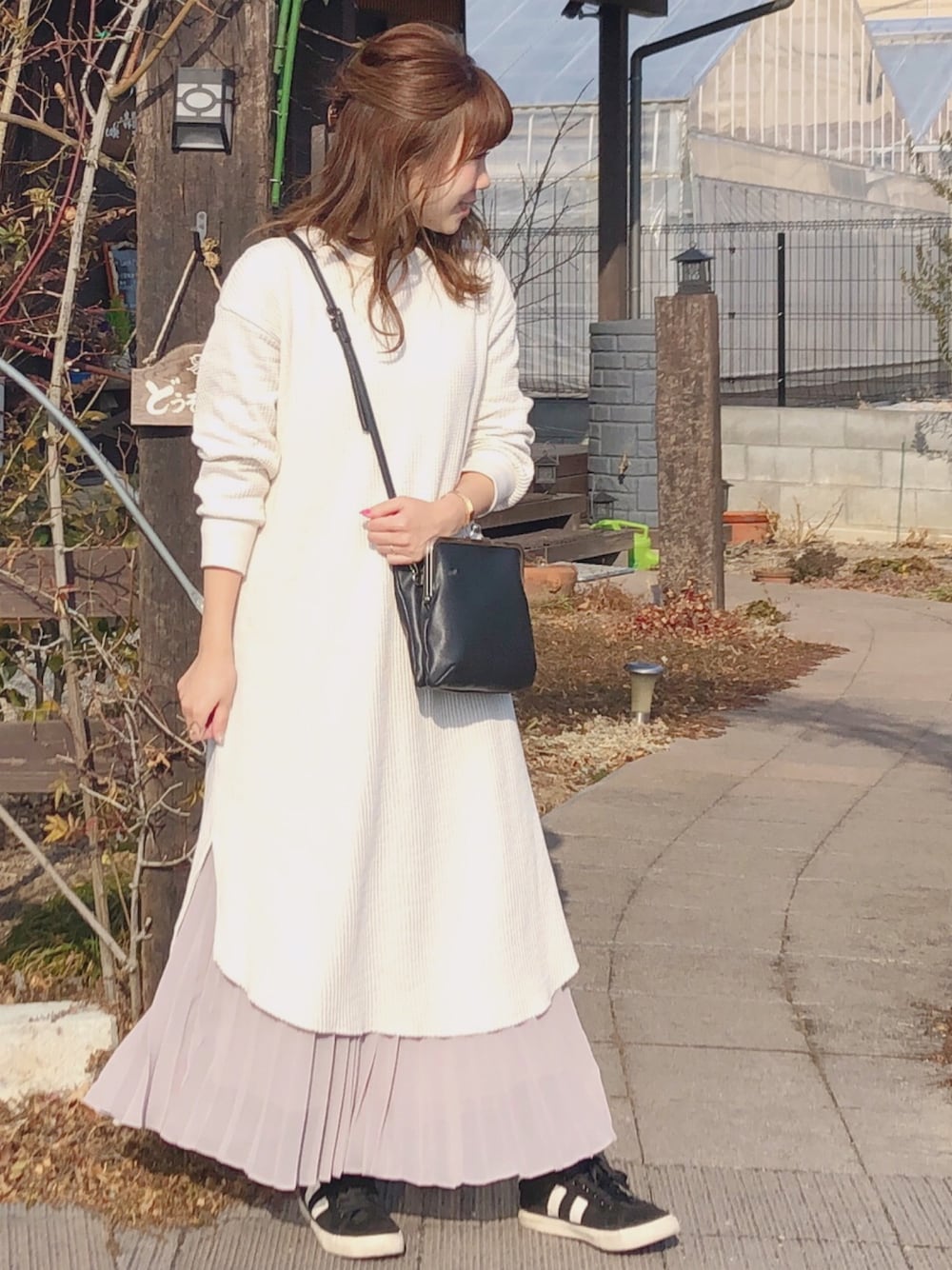 秩父までお出かけした時のコーデ♡ GUの ワッフルスリットワンピース が楽すぎて 色違い欲しい😍 いつもは153センチで Sサイズですが 丈が欲しかったからMサイズにしました♡
