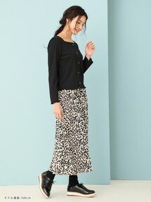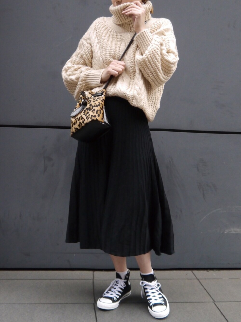 ケーブルニット×ニットスカートコーデ💛 ニット×ニットって、今年っぽい♪ レオパード柄のハラコ風バッグがポイントです❣️ どっちもプチプラ✨ corners 16日(日)限定で¥1,000オフクーポン出ますよ‼️要チェックです😆