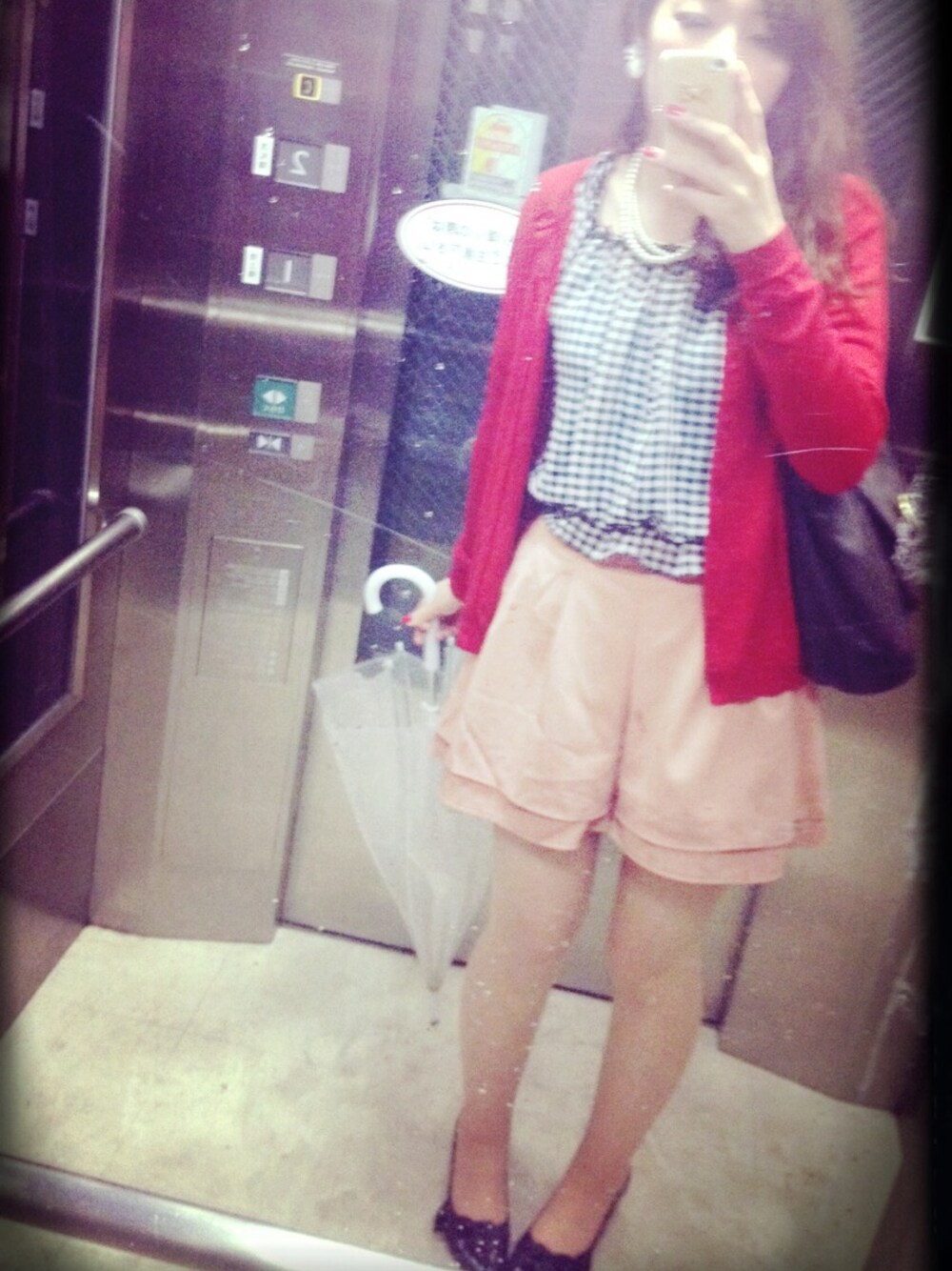 赤を着る人ってあんまりいないですか? そんな事ないと思うんですけどね… 会社だと私赤のイメージらしいです! そんなに着てないけど、他に着る人がいないからイメージってついちゃうみたい(´・_・`) ギンガムチェック×ピンク×パール 女子コーデでした*