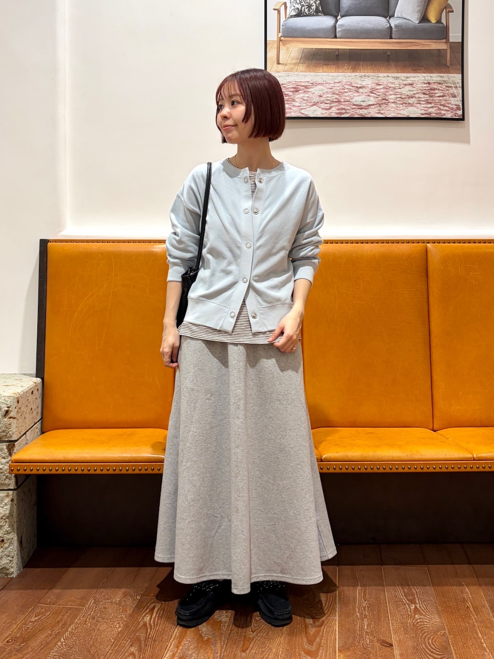 ご覧頂きありがとうございます! 今回はライトタックフライスカーディガンに合わせてコーデを組みました。 カーディガンは薄手の素材でさらっと着用して頂けます◎ ライトブルーが柔らかい色味で可愛いです! スカートは楽な履き心地でシルエットもきれいです✨