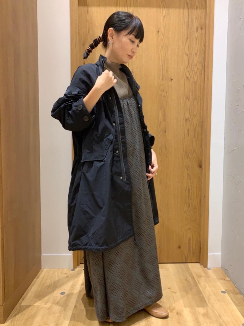 フェミニンなインナーにも、モッズコートは相性◎!カジュアルをプラスして楽しめます 商品名:【ユニセックス・WEB限定カラー】撥水M-65TYPE モッズコート サイズ感:身長157cmでSサイズを着用しています。とってもゆったりしていて大きめですが、そのシルエットがトレンド感を演出してくれます。軽くて楽に着用できるのも魅力です 素材感:軽くて少し光沢があります。雨や水をはじいてくれる加工が施してあるのも嬉しいポイントです