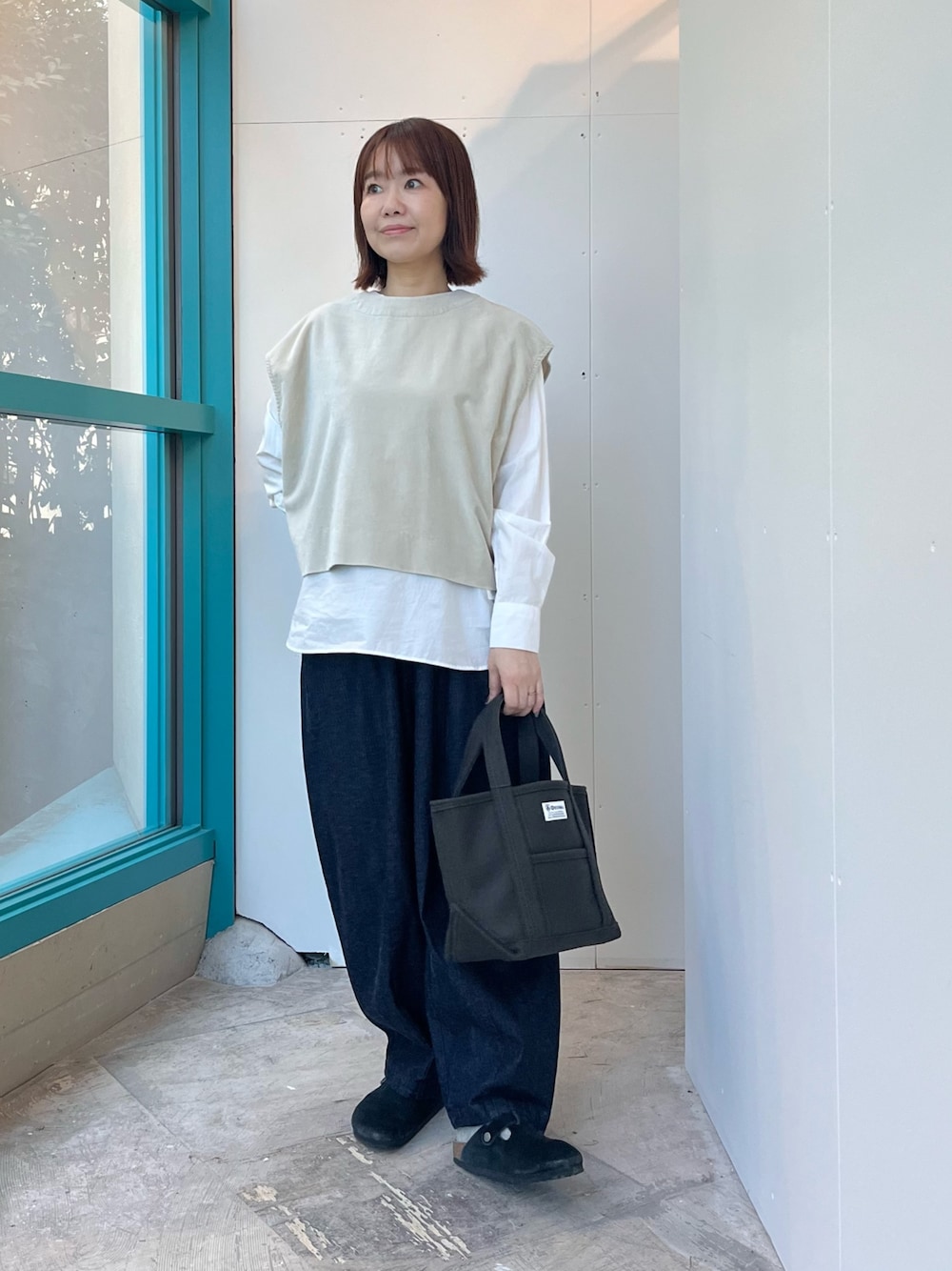 くずみ(DOORS イクスピアリ)のベスト「コットンベルベット2WAYベスト」を使ったコーディネート