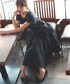 ブラックオフショル×フレアスカートのフェミニン スタイルにスニーカーを合わせてフェミカジに✨ パンプスもいいけど、たまにスニーカー合わせも、やっぱいかわいい💓