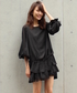 ブラックのクラシックコーデ♪ ブラックのワントーンスタイル。 袖が透け感あるパフスリーブのブラウスで、全体が重たくならないように抜け感を出したよ♡